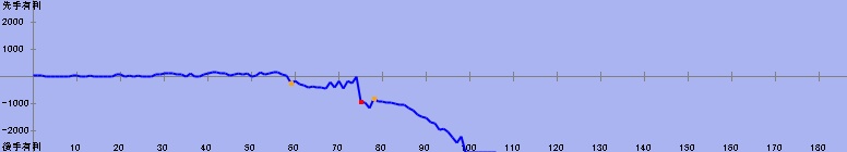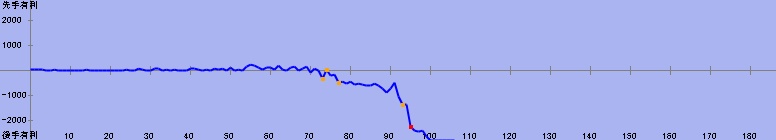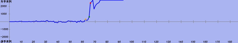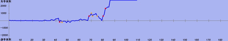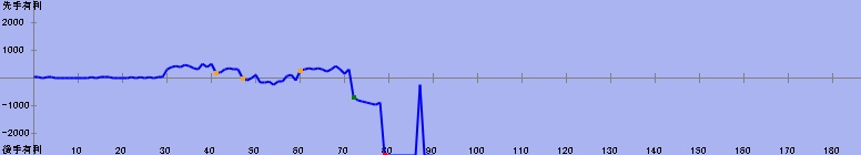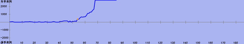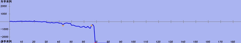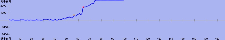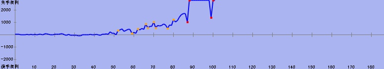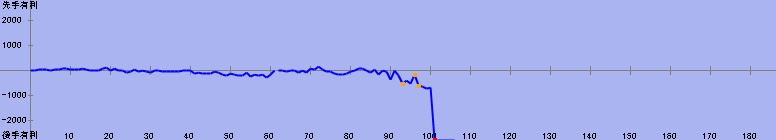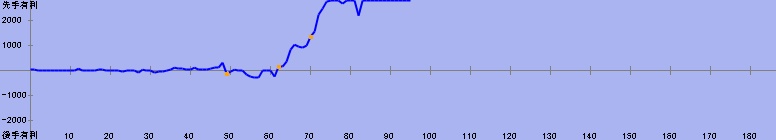 71手目:残り時間5分(居玉、劣勢) 対 50分からの勝利 | |