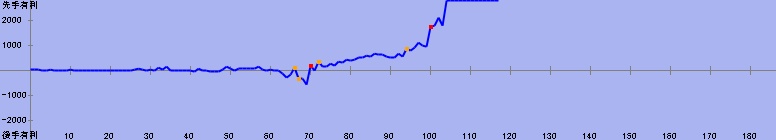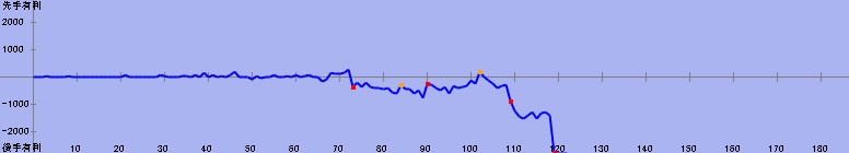 A | 竜 | 1 | 6 | 1 | 先 | ● | 104 | 相掛かり | ![]() |